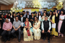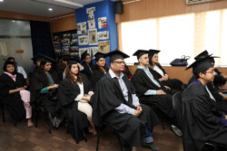 The graduates received their diplomas from the chief guests in the presence of their family members.