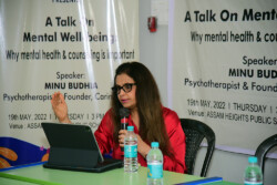 Psychotherapist & Founder-Director, Ms. Minu Budhia, gave a talk on the Importance of Mental Health & Counselling. This event was held at Assam Heights Public School, Tinsukia on 19th May, 2022. Through this talk she spread awareness on how to break the stigma and trash the taboos surrounding mental healthcare.